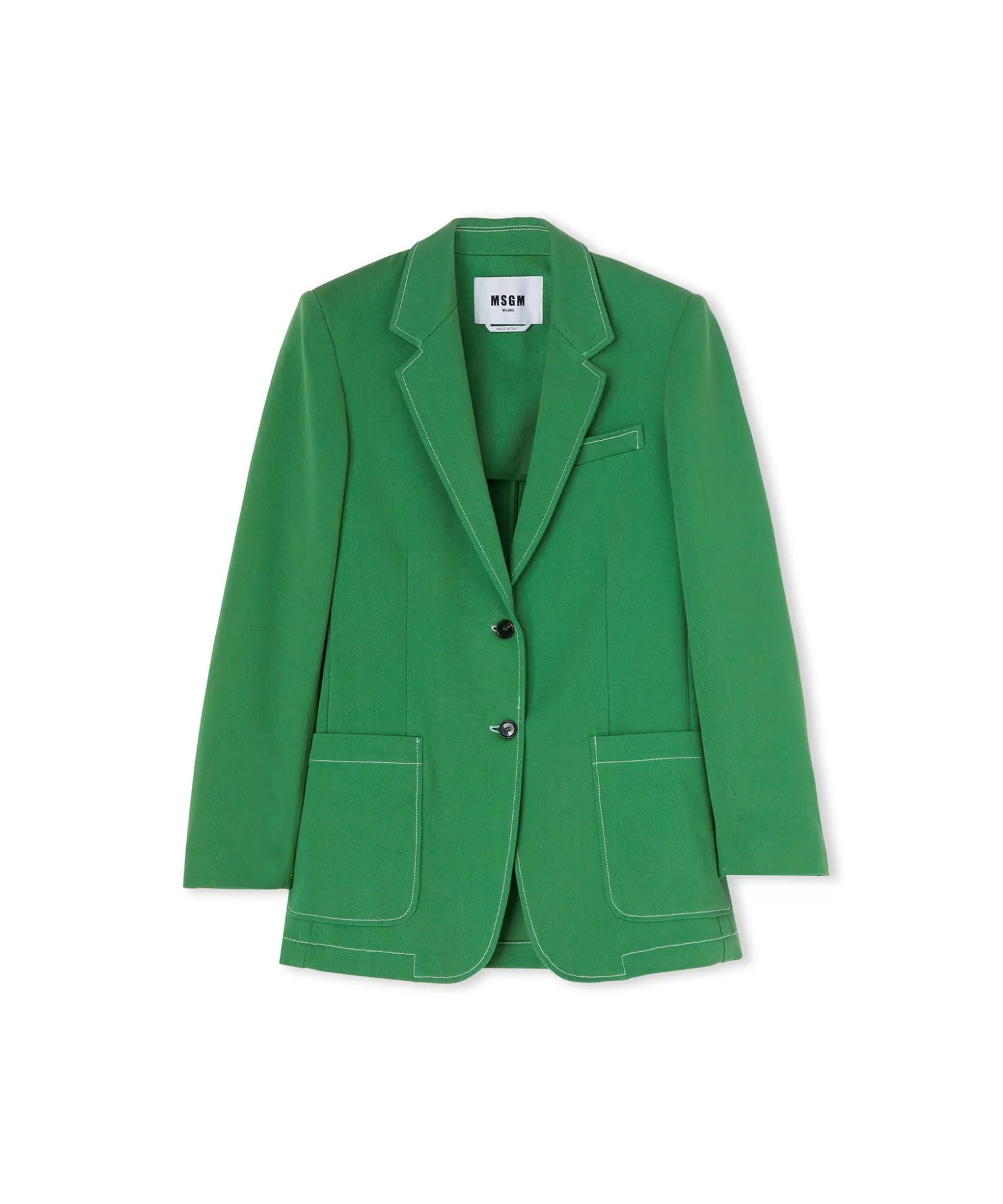 Donna MSGM Blazer Monopetto In Denim Con Cuciture A Contrasto