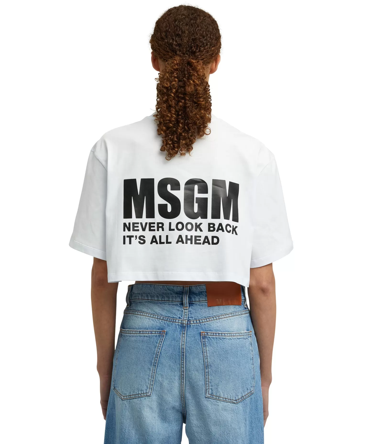 Donna MSGM T-Shirt Girocollo Crop In Cotone Con Logo E Quote