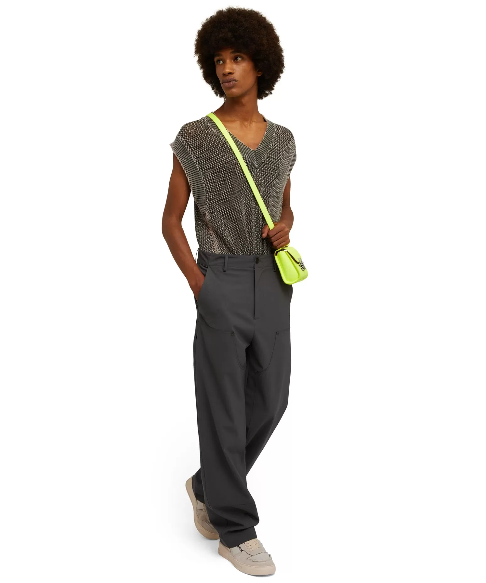 Pantalone Worker A Gamba Dritta Tinta Unita. Chiusura Con Zip E Bottone Con Passanti In Vita. Tasche A Scomparsa Laterli…
